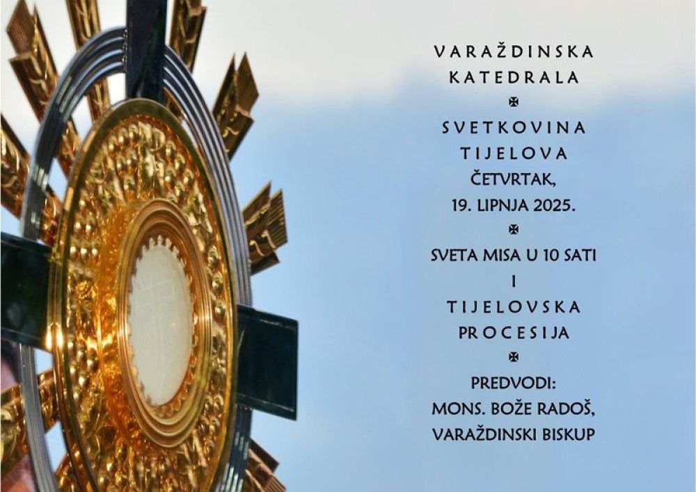 Na svetkovinu Tijelova, u četvrtak 19. lipnja varaždinski biskup Bože Radoš predsjedat će euharistijskim slavljem u varaždinskoj katedrali s početkom u 10 sati, nakon kojeg će uslijediti tijelovska procesija s Presvetim Oltarskim Sakramentom središnjim ulicama Grada.