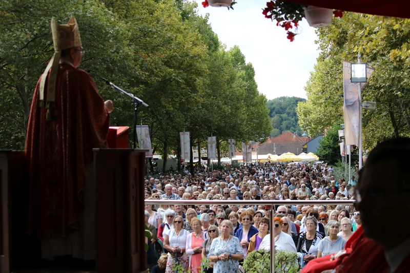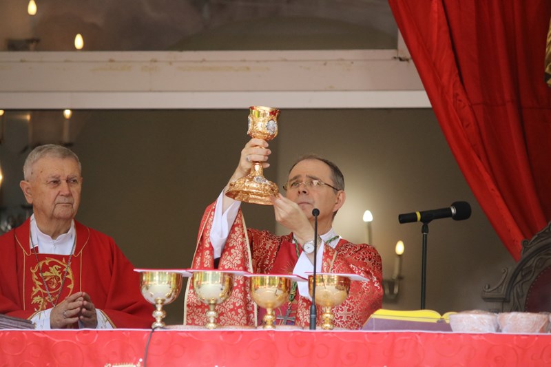 Sveto trodnevlje uoči Svete nedjelje. U svom je nagovoru prije mise potaknuo vjernike na sabrano i zahvalno čašćenje relikvije Krvi Kristove, na sakrament ispovijedi i zadobivanje milosti potpunog oprosta na ovom hodočašću. Pozvao ih je na obnovu vjere i zauzeto i snažno svjedočenje Božje prisutnosti u svijetu po sakramentu Euharistije.