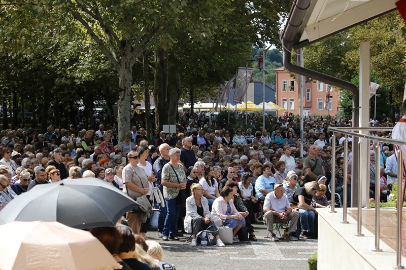 Hodočasnike je prije središnjeg misnog slavlja dočekao p. Ivan Raljušić,CPPS, ovogodišnji duhovnik i propovjednik u svetištu kroz