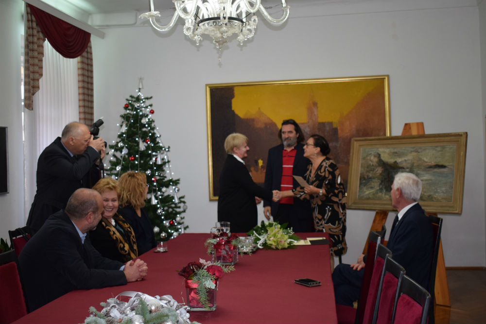 Prijemu su u ime triju institucija nazočili Jasna Jakovljević intendantica HNK u Varaždinu, Janja Banić, ravnateljica Prve gimnazije Varaždin i Ivan Mesek, ravnatelj Gradskog muzeja Varaždin, koji su uz gradonačelnika Čehoka u ime svojih ustanova zahvalili bračnom paru Bezjak na toj velikoj gesti.