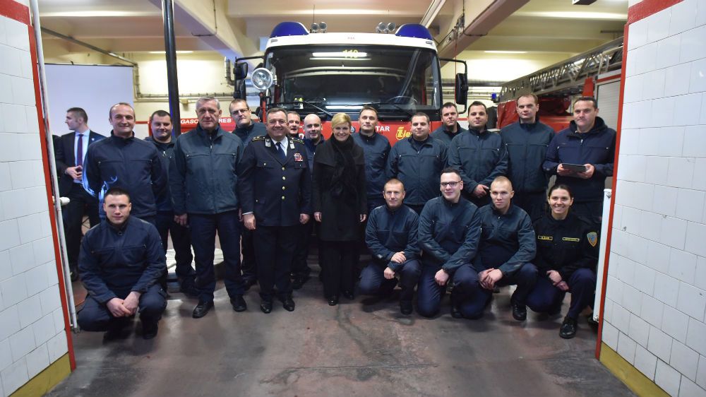 Predsjednici su vatrogasci prezentirali svoj radni dan i izlaske na intervenciju, vatrogasnu opremu i vozila, a ona im je donijela svoju domaću francusku salatu i predsjedničku tortu, No ubrzo su stigli pozivi na intervencije, a zapovjednik zagrebačkih vatrogasaca Siniša Jembrih objasnio je novinarima da je to uobičajeno za novogodišnje noći.