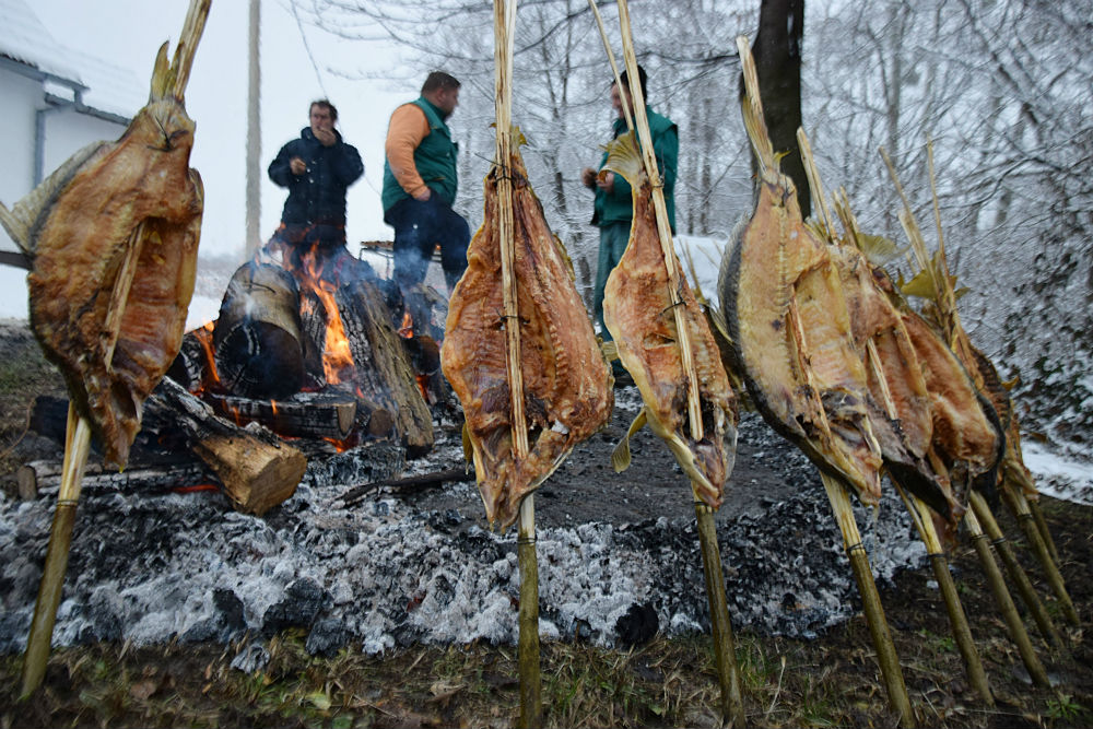 I kako već na Vincelovu bude, miris pečene slanine i domaćih kobasica kadio je kraj, a malo dalje su vrsni znanci za pečenje pripremali šarane na rašljama. Riječ je o ribi iz vlastitog uzgoja s Grudnjaka, ribnjaka u blizini Orahovice koji obuhvaća teritoriju od 950 hektara.