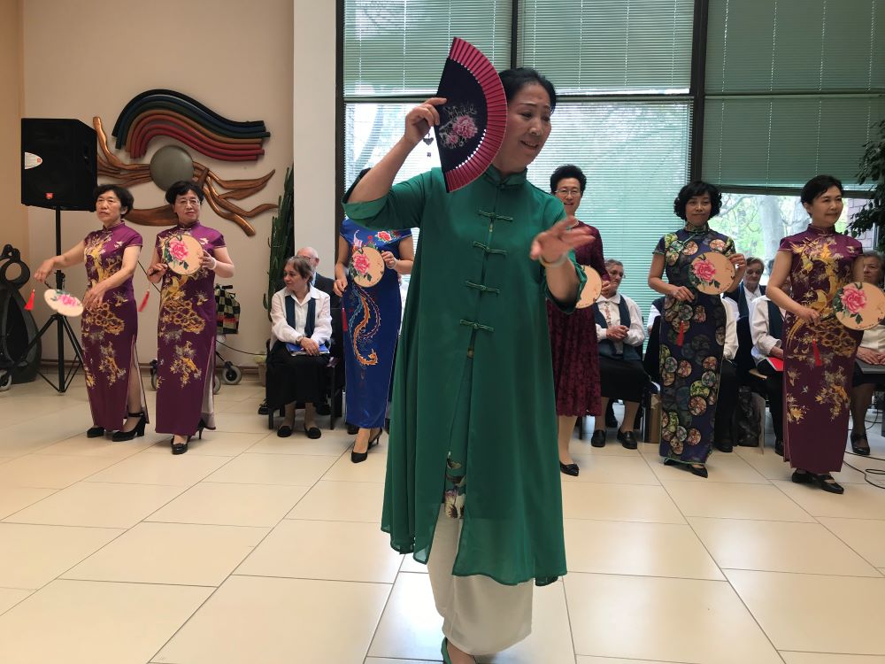 Posjet gostiju iz Kine dio je njihovog devetodnevnog studijskog putovanja po Hrvatskoj. Pandan takvoj ustanovi u kojoj se uči pjevati, plesati, crtati i općenito kreativno se izražavati na akademskoj razini u odmakloj dobi u Hrvatskoj zasad ne postoji, stoga su okupljeni u Domu zainteresirano promatrali njihov program. Gosti su prezentirali umjetnost kuhanja čaja, kaligrafije i crtanja, tradicionalni ples, pjesme i razmijenili poklone s domaćinima. Korisnici Doma su izveli program koji se sastojao od zborskih i solo pjesama te folklornih i modernih plesova. Na samom kraju programa, druženje se nastavilo uz domjenak.