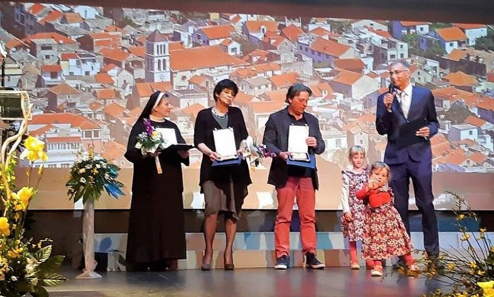- Dragi prijatelji i prijateljice, više od tisuću vas mi je čestitalo Nagradu grada Vodica za životno djelo. Zahvaljujem vam kao i svima s kojima sam radio i surađivao u ovih pedeset godina. Uz mene na pozornici su unučice Ana i Marija, časna sestra Zdravka Gverić koja je primila Nagradu grada za 50 godina rada časnih sestara Franjevki od Bezgrješne u Vodicama, moja generacija Kate Franin nagrađena za doprinos školstvu Vodica i slikar Roko Ivanda koji je u ime likovne udruge More primio nagradu za posthumno nagrađenog slikara Milana Mićina.