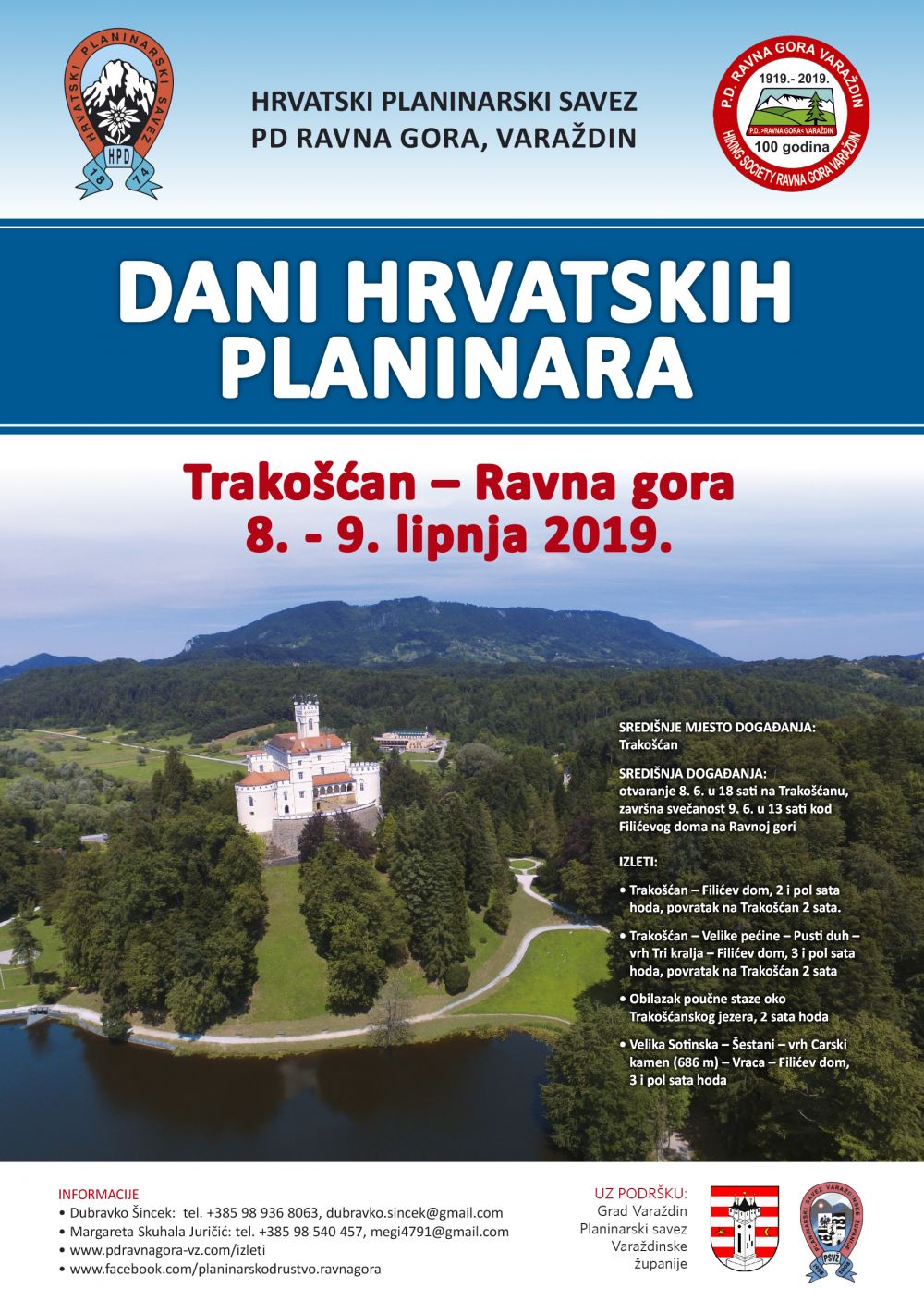 Hrvatski planinarski savez Planinarsko društvo Ravna gora, Varaždin pozivaju vas na Dane hrvatskih planinara Trakošćan – Ravna gora koji se održavaju 8. i 9. lipnja