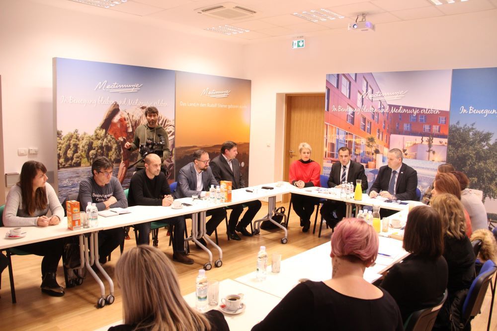 U Međimurskoj palači turizma održan je radni sastanak voditelja turističkih zajednica iz Međimurske županije u organizaciji Hrvatske turističke zajednice i Turističke zajednice Međimurske županije kojemu su uz voditelje i predstavnike turističkih zajednica Grada Čakovca, Grada Murskog Središća, Općine Štrigova, Općine Nedelišće i Općine Sveti Martin na Muri, nazočili direktor HTZ-a Kristjan Staničić, župan Međimurske županije Matija Posavec sa zamjenicom Sandrom Herman, pročelnik UO za gospodarske djelatnosti Darko Radanović i viši stručni suradnik za turizam Marko Puškadija.