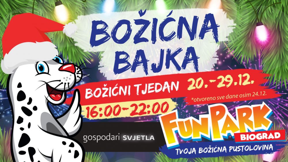 Odličan program nastavlja se i idućih vikenda, a šarolikost događanja svakako će privući sve uzraste, a najviše one najmanje jer ekipa Fun parka Biograda opet sprema prave božićne pustolovine.Zabavite se i krenite u pravu adventsku avanturu koja će vas podići i prebaciti na sasvim drugi nivo božićne čarolije. Uz gastro ponudu, zaplešite, provozajte se na atrakcijama, ponešto naučite i svakako dobro se zabavite. Poseban svjetlosni ambijent božićne čarolije idealna su kulisa za nezaboravne fotografije koje će još dodatno upotpuniti i čarobni likovi iz predstava, filmova, crtića i stvoriti vam nezaboravnu adventsku uspomenu. Za samu Božićnu bajku Fun park Biograd pripremio je i posebne cijene ulaznica. Naime ulaznica + neograničene vožnje na posebnim atrakcijama iznose samo 70 kn. Ostale posjetiteljske ulaznice za djecu, studente te umirovljenike su 30 kn, a za odrasle 40 kn.