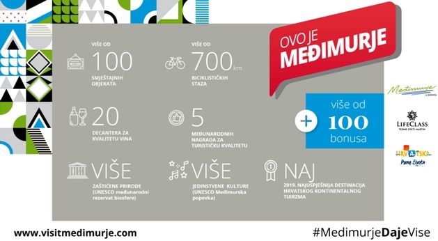 U Međimurju je više gostiju nego lani u istom razdoblju! U mjesec dana turisti su u Međimurju potrošili više od četiri milijuna kuna ne računajući smještaj! Turistička zajednica Međimurske županije u suradnji s LifeClass Terme Sveti Martin i 50-ak partnera iz javnog i privatnog sektora pokrenula je turističku kampanju pod sloganom „Međimurje daje više!“, koja traje od 15. lipnja do 15. rujna 2020. Cilj kampanje je umjesto natjecanja u spuštanju cijena, ponuditi dodanu vrijednost turistima te se u vremenu kada je fokus na kontinentalnom turizmu pozicionirati i nametnuti Međimurje kao idealnu destinaciju koja nudi i daje više. Kampanja je usmjerena na domaće tržište s ciljem privlačenja domaćih gostiju na način da za svakih potrošenih 250 kuna dobiju kupon za jednu od više od 100 ponuđenih besplatnih usluga u destinaciji. Nakon mjesec dana kampanje “Međimurje daje više!” poznati su i prvi rezultati kampanje koju provodi TZMŽ u suradnji s partnerima.