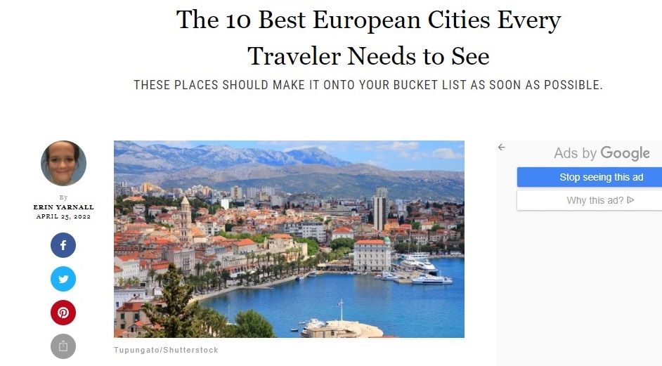 Popularnost Splita i Dalmacije na američkom tržištu potvrđuje i objava na popularnom portalu BestLife, koji pokriva teme turizma, lifestylea, kulture i zdravlja. Tako je u članku „The 10 Best European Cities Every Traveler Needs to See“, novinarke Erin Yarnall, Split zauzeo visoko 3. mjesto, iza Amsterdama i Granade, ali ispred brojnih prestižnih gradova kao što su Pariz, Porto, Dublin, Krakow, London, Tallinn i Zurich.