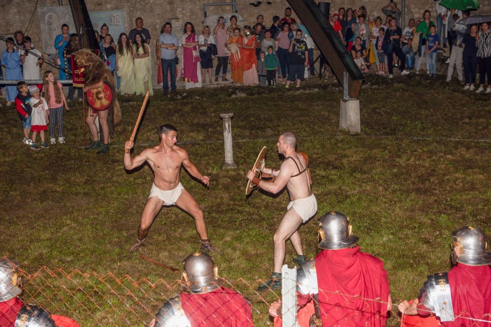 Aqua fest uvijek obiluje zanimljivim programima, a ove godine održan je koncert posvećen vodi, predstava i scenski spektakl Žrtve Dijani Luni i Žrtve Paljenice, a posebno uzbudljive bile su borbe gladijatora i program Dioklecijanova Legija.