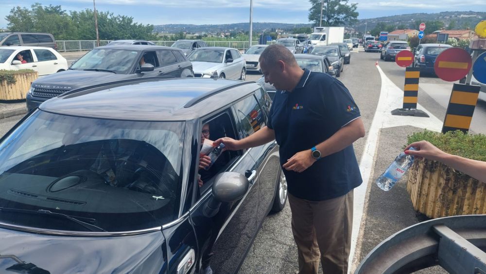 Akciji podjele vode na graničnom prijelazu Plovanija priključio se direktor Hrvatske turističke zajednice Kristjan Staničić, direktor TZ Istarske županije Denis Ivošević, predstavnici turističkih zajednica gradova Umag i Buje te nekoliko djelatnika HTZ-a.