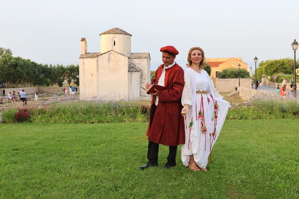A kakav je doživljaj kada vas turistički domaćin dočeka na ulazu u grad pozivajući u obilazak, upoznavanje i doživljaj mjesta uprizorenjem lika jednog od svojih najznačajnijih stanovnika, ali i jednog od najvećih zaljubljenika u grad? Turistička zajednica grada Nina za svoje je goste pripremila upravo takav doživljaj. Hrvatskim kraljevskim gradom i jednim od najljepših malih gradova Hrvatske – Ninom, posjetitelje vodi sam Petar Zoranić Ninjanin. Kolika i kakva je bila ljubav pjesnika i grada, pa se njegovo ime bilježi i pamti s nadimkom – Ninjanin, zašto je Nin kraljevski i koja kraljevska blaga čuva, što su Ninjani stvarali i sačuvali u svom gradu, ali i cijeloj Hrvatskoj i kako žive sadašnjost, u kostimiranom, scenskom turističkom vođenju posjetitelje upoznaje turistički vodič Ivica Škriljevečki. Odabir pjesnika Petra Zoranića za „vodiča“ Ninom ima svoje povijesne i književne razloge. Pomalo zanemareni pisac, rođeni Ninjanin Petar Zoranić, autor je prvog hrvatskog romana „Planine“. Vrijednost ovog iznimnog književnog djela ima i svoju turističku, ali i domoljubnu dimenziju. Djelo se smatra prvim turističkim vodičem u Hrvatskoj, a ljubav prema domovini očituje u pozivu da se glasnije i snažnije ističu sve vrijednosti kojima zemlja obiluje. Petru Zoraniću u živopisnom turističkom vođenju pridružuje se i Vila Hrvatica čiji lik dočarava kostimirana turistička vodička.