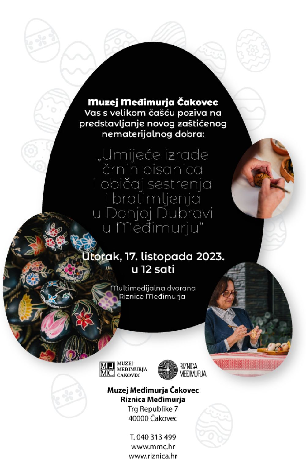 Nakon dugotrajnog postupka zaštite kulturnih dobara, s veseljem javljamo da je Međimurje dobilo novo zaštićeno nematerijalno dobro: „Umijeće izrade črnih pisanica i običaj sestrenja i bratimljenja u Donjoj Dubravi u Međimurju“, stoji u pozivnici Muzeja Međimurja Čakovec.