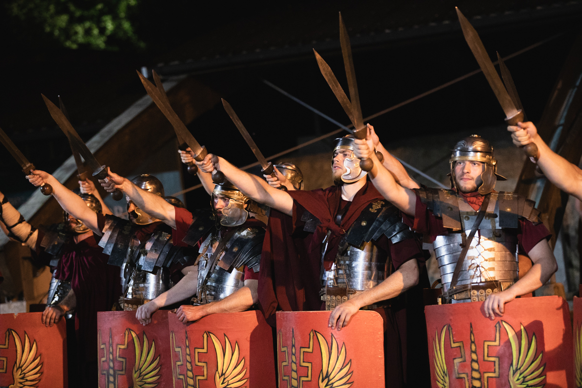 Uz kostimiranu povorku Rimljana koja je prošla gradskim ulicama i stigla do antičkog kompleksa, danas zaštićenog arheološkog parka, posjetitelji su mogli uživati u atraktivnim borbama gladijatora, dramatičnom pokušaju preuzimanja vlasti i pogledati kako su Rimljani prinosili žrtve. Dio atraktivnog programa bili su ples na svili, svjetlosni spektakl, koncert uz izvorišni bazen i različite radionice za djecu, od gladijatorske škole do izrade antičkih vjenčića i lutaka.