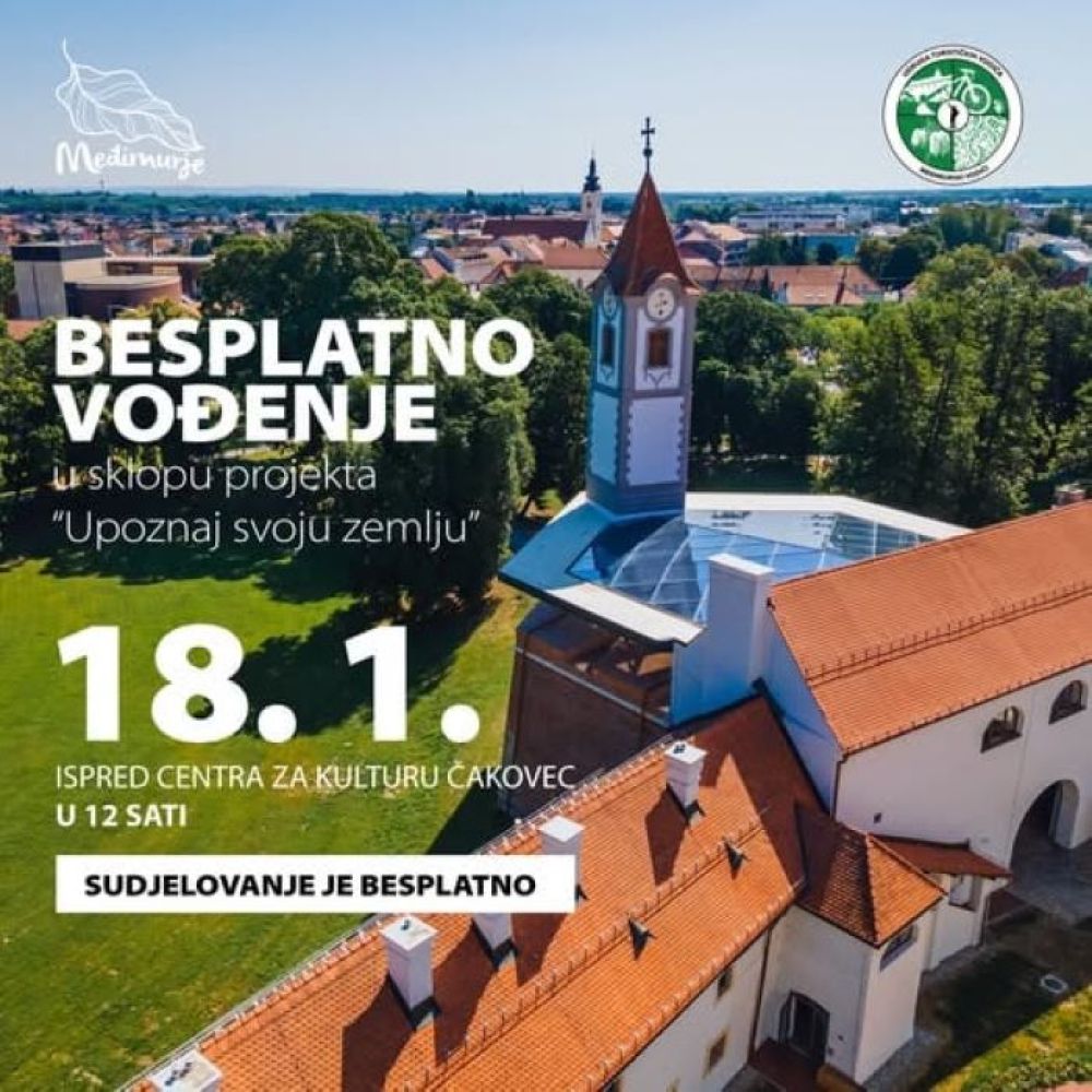 Udruga turističkih vodiča “Međimurski vodiči” poziva građane da se u nedjelju, 18. siječnja, u 12 sati pridruže besplatnoj vođenoj turi u sklopu projekta „Upoznaj svoju zemlju“.