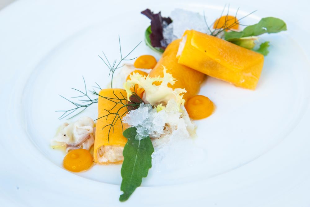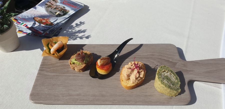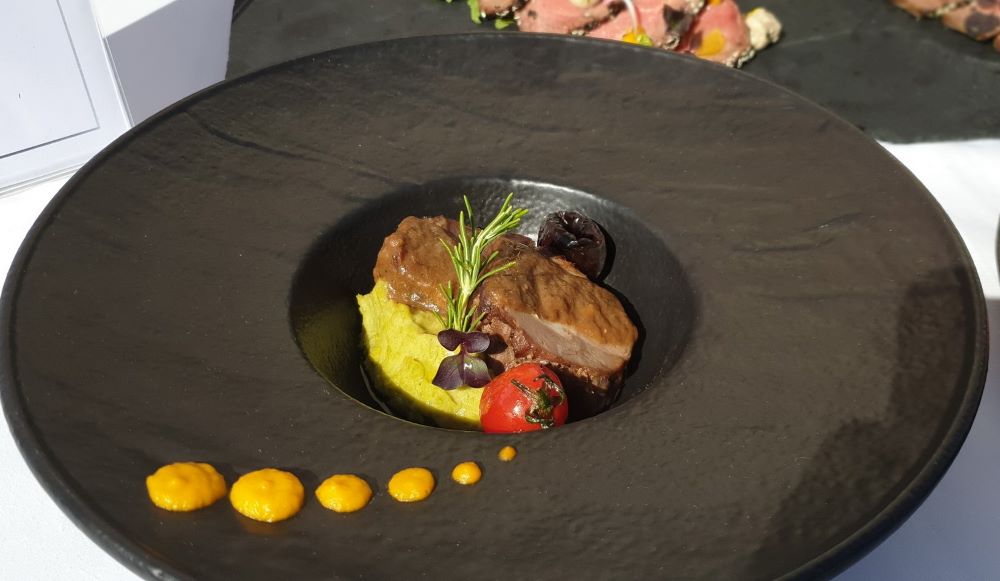 Ekipa chefa Hamida Hadžića iz hotela Miramare za predjelo je poslužila juneći rostbif s hladnom paštetom pršuta, marmeladom pipuna i divljom salatom. Glavno jelo im je bio rolani janjeći but sa suhim šljivama i ružmarinom. Hadžić je smiješao pred posjetiteljima i tartar, a zatim je poslužio mini Makarana torte s hladnom kremom od badema i svježih smokava.