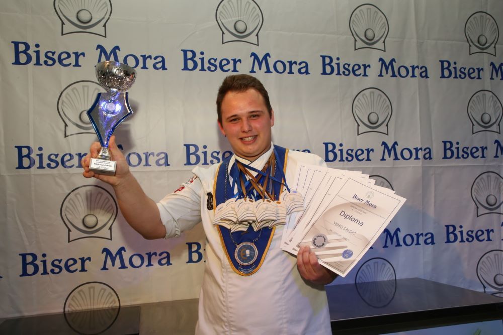 Juniorski prvak Bisera mora je Vehid Šaldić (22) i sam je bio po prvi put na Biseru mora. Zaljubljenik je u molekularnu kuhinju iz Bosne i Hercegovine koji karijeru gradi u Hrvatskoj. Natjecao se čak u 12 kategorija."Nema što nisam kuhao u tri dana natjecanja i osvojio 12 medalja, a planovi su i dalje učiti i uzeti još više medalja na idućem Biseru mora. Srednju školu sam završio u Puli, a prve korake na natjecanjima sam napravio uz mentora Erika Glavicu. Radim u hotelu Pinija u Petrčanima kod Zadra, volim moderna riblja jela i uz to molekularnu kuhinju. Kako bi napredovao, čitam jako puno knjiga, educiram se kod kolega koji su specijalisti, a posljednje dvije godine i u inozemstvu" – kazao je Šaldić.