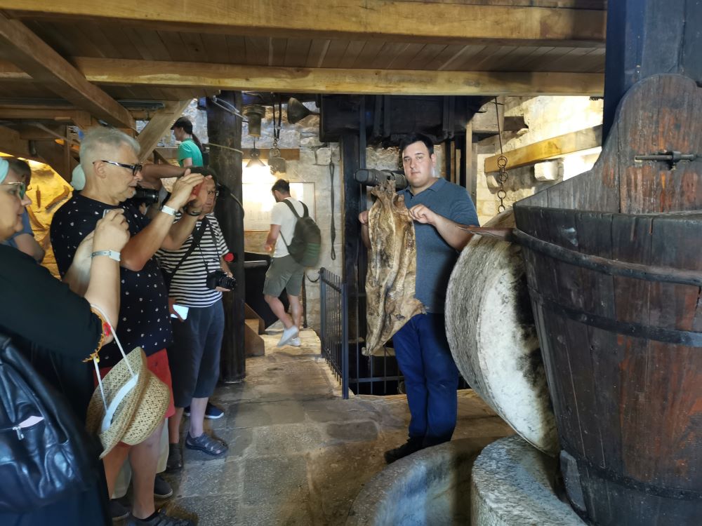 Muzej uja, Škrip upriličio nam je potpuni doživljaj pa je uz priču u maslinarskoj povijesti otoka i načinim prerade maslina i proizvodnji ulja uslijedila i degustacija: likera od maslina i višnje; ekstra djevičanskog maslinovog ulja, domaćih džemova; namaza od crnih maslina; namaza od zelenih maslina; ovčjeg i kozjeg sira, dalmatinskog pršuta; carpaccia od inćuna, te crnih maslina u soli.