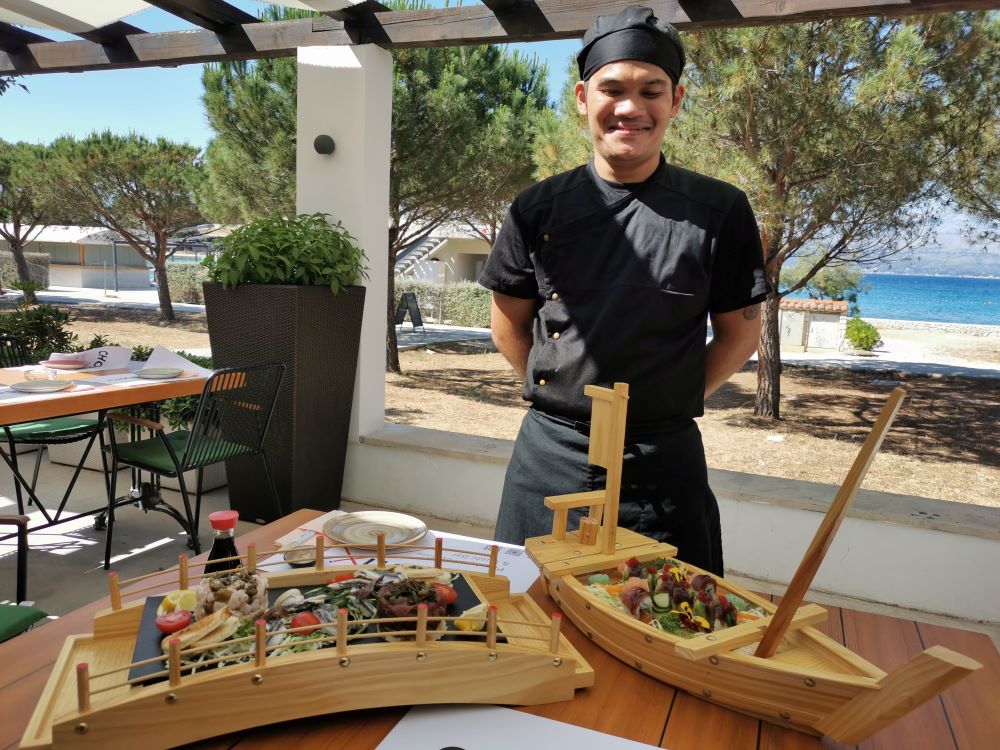 Njegov Restoran & sushi bar Chopstix istaknuo se posebnim serviranjem svojih jela na drvenim brodićima ali i nazivima jela pa smo kušali Sirove Strasti (tartar od jadranske tune, marinirani i slani inćuni, kozice, zelena mišanca, kapari, motar, extra djevičansko maslinovo ulje, kruh sa češnjakom), a ukusna Otočna rolica sa svježim lokalnim namirnicama i azijskim tvistom bila je još jedan praznik za nepce.