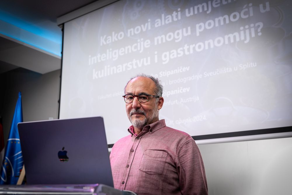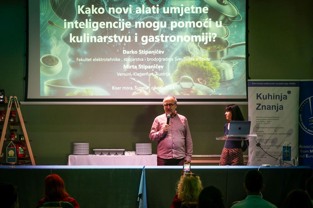 „Koncentrirali smo se na četiri područja u kojima umjetna inteligencija može biti posebno korisna. Prvo od njih je odabir recepata prema različitim kriterijima, od sastojaka do nutrijentnog balansa iz velikih baza recepata, od kojih neke sadrže i milijun recepata. Drugo područje je kreiranje recepata iz izabranih sastojaka, koristeći specijalizirane alate umjetne inteligencije kao što su TasteGPT, ChefGPT, MealBot. Posebno mjesto u tome ima kreiranje recepata koje se temelji na percepciji mirisa i okusa, koja se bavi proučavanjem i razumijevanjem senzorskih spojeva i mehanizama koji pridonose okusu, mirisu , teksturi i cjelokupnoj percepciji okusa hrane i pića“ – kazao je Stipaničev,