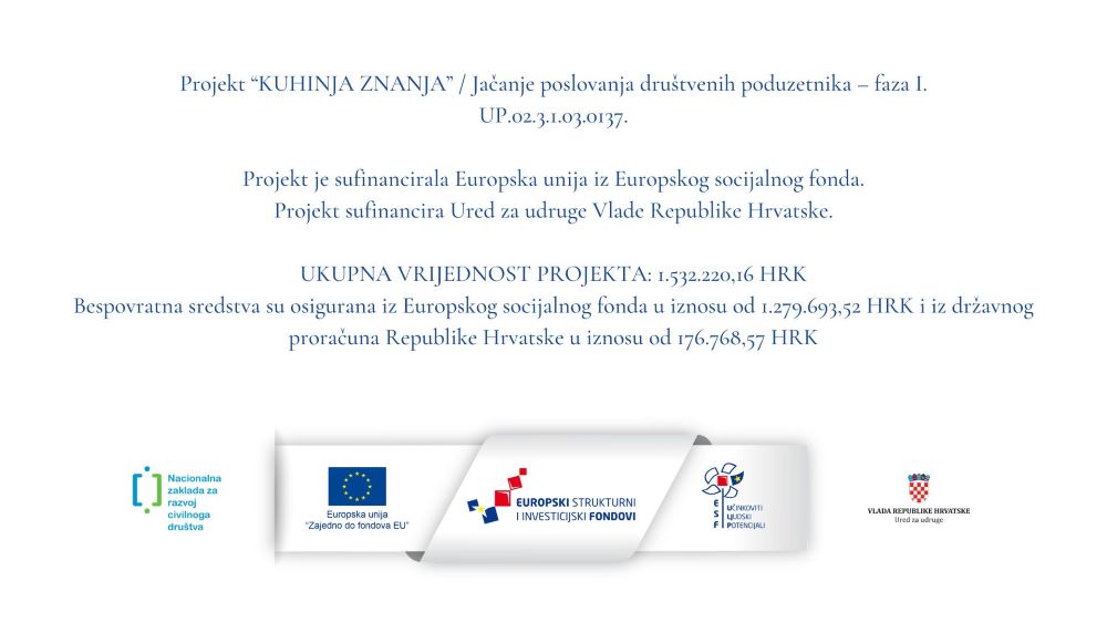 Projekt Kuhinja znanja su sufinancirali Europska unija iz Europskog socijalnog fonda te Ured za udruge Vlade Republike Hrvatske.