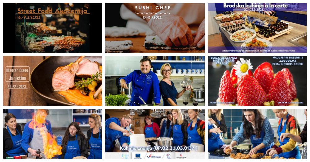 Održani su, između ostalog, kulinarski treninzi za kuhare na turističkim brodovima, edukacije visokog slastičarstva, pizza chef specijali i hands-on majstorske radionice za haute cusisine teme poput molekularne kuhinje, gurmanskog street fooda, grilla, dimljenih slanih jela i slastica i carvinga. Edukacije su prošli zaposlenici udruge, profesionalci u ugostiteljstvu, strukovni nastavnici i mentori, kao i mnogi drugi koji su željeli unaprijediti svoja znanja, vještine i optimizirati poslovanje primjenom modernih tehnologija i koncepata.