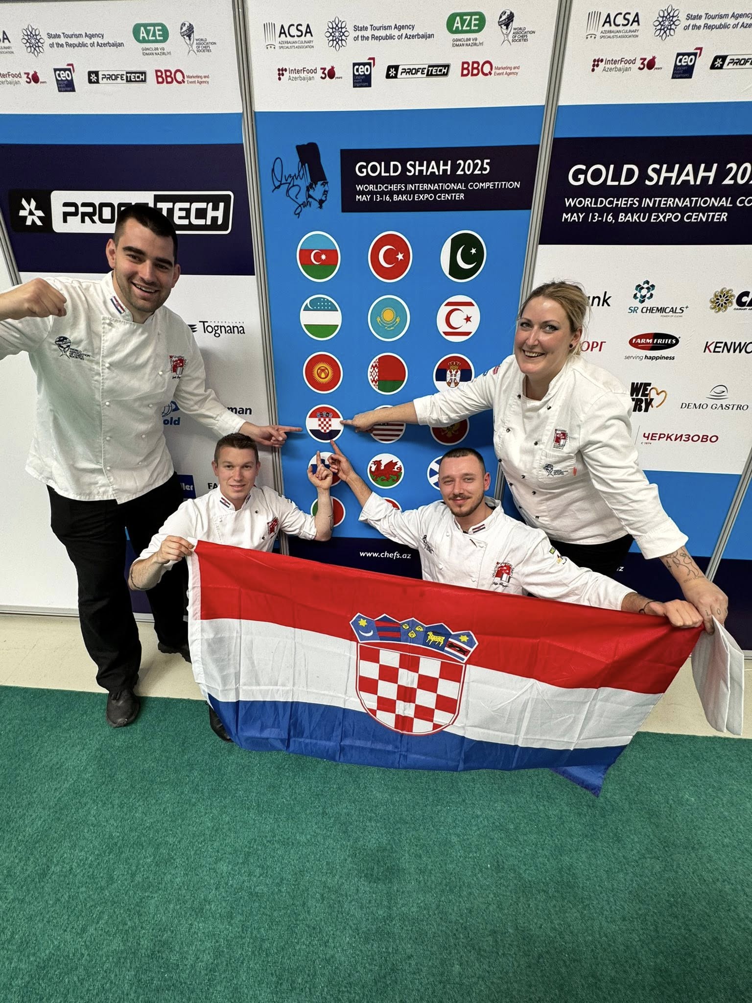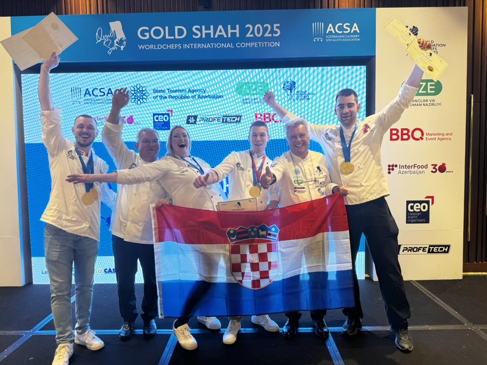 Hrvatski kuhari, članovi Hrvatskog kuharskog saveza, na međunarodnom su natjecanju u Azerbajdžanu, Golden Shah 2025., na kojem je nastupilo 300 kuhara iz devet zemalja, vratili s čak tri zlata, jednim srebrom, diplomom i timskom broncom.