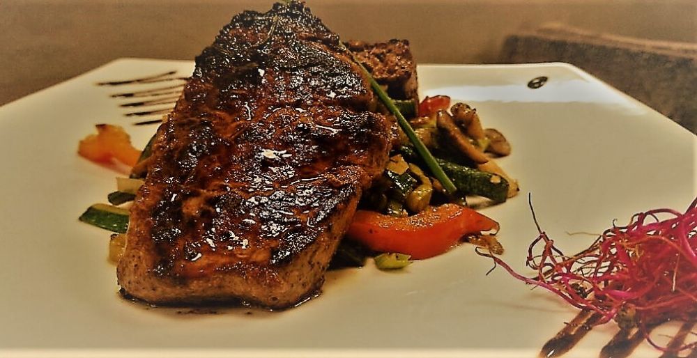 Ramsteak carppacio sa pireom od kestena, craunch od đumbira i prahom od maslinovog ulja.