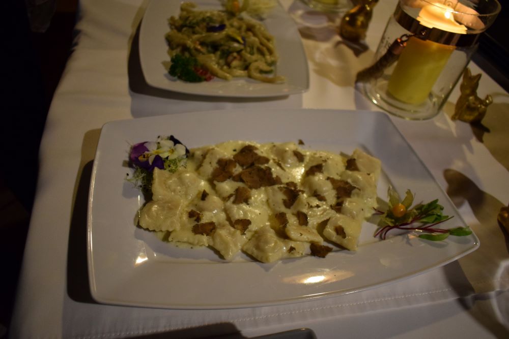 Sljedeća gastro "štacija" bio je restoran Galija, u Krku, koji je za temu odabrao domaću tjesteninu i kruh iz krušne peći, pa smo imali na stolu i sjajne šurlice sa škampima i divljim šparogama, makarune s domaćom sipom, raviole punjene jadranskim kozicama u umaku od crnog tartufa, a sve to sljubljeno uz vina Agrolaguna, Josić i Brzica.