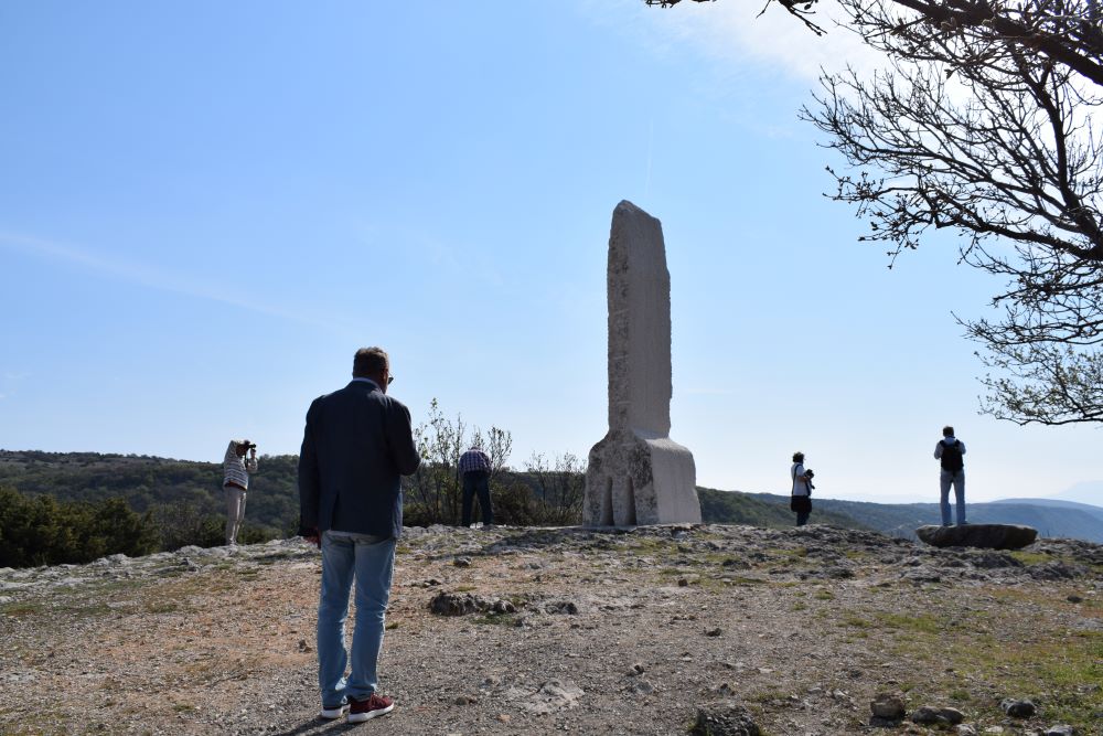 Direktorica Turističke zajednice i predstavnici Udruge Sinjal dočekuju nas na početku na uzvisini s koje se pruža pogled duž bašćanske doline sve do mora i otoka Prvića u daljini. Tu je i prvo slovo glagoljičke azbuke Az i tu počinje Bašćanska staza glagoljice, koja ima svoju zanimljivu priču.