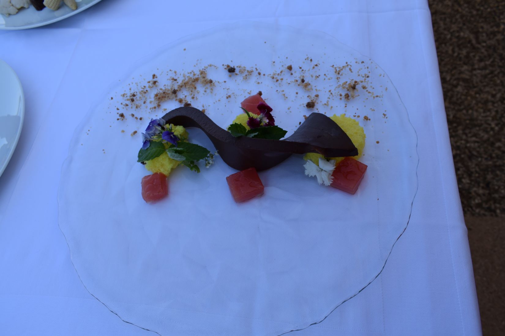 Raskošnom meniju prethodio je pjenušac Valomet. Prezentirano je maslinovo ulje otočke sorte Drobnica / Bonifačić, a od jela posluženi su kvarnerski škamp iz mora / mariniran / s jabukom uz Riesling kabinet Knebel 2016, Mosel, oslić u juhi, jež s tagliatelima uz Terre bianche couvee blanc 2016, Degrassi Istra, lignja kozica / porto / palenta uz Sansigot 2015, Dobrinčić Vrbnik, Šparoga bijela čokolada / lješnjak uz Muškat Momjanski 2016, Kozlović Istra, kao šećer na kraju.