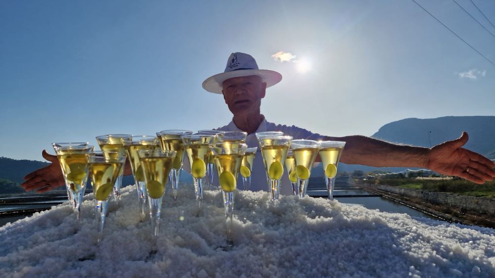 Većinski vlasnik Solane Svetan Pejić,(na slici) ujedno i direktor Solane i restorana Koruna uvjerili smo se turistički je djelatnik par exelance. Oduševio nas je već pri dolasku svojom srdačnošću, elokvencijom i pričom o povijesti Stona te njegovoj povezanosti s Dubrovačkom Republikom. Njegovu osobnost i nesvakidašnji dar za turističku promidžbu trebalo bi nagraditi, jer susret s njime i nama je bila nagrada i dar. Nakon priče o soli slijedio je ručak u restoranu Koruna – s obiljem plodova mora počevši od svježih kamenica, do netom iz mora izvađenih riba i rakova, juhe od kozica, salate od hobotnice, crnog i bijelog rižota.
