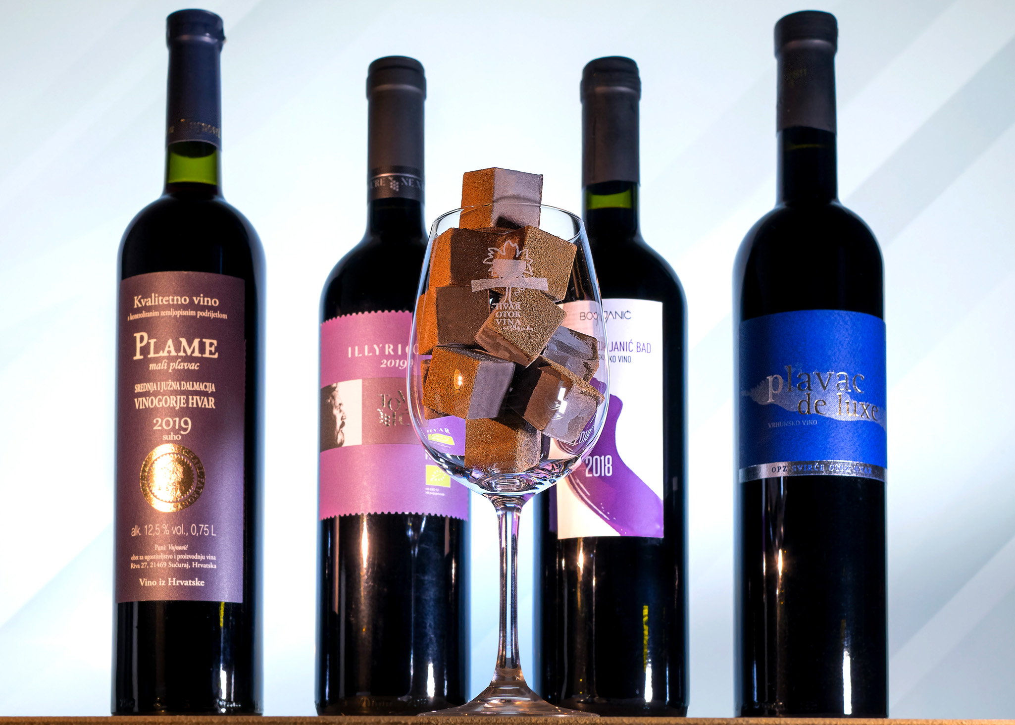 Tri vrste čokoladnih kocki spojite uz tri boje različitih hvarskih vina: