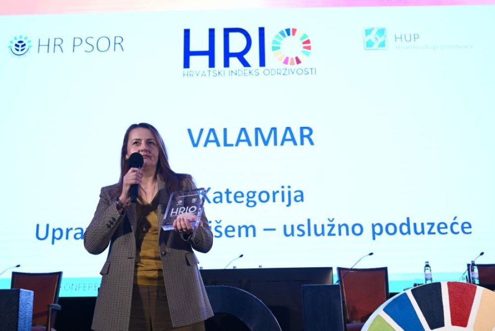 Valamar, vodeća turistička kompanija, dobitnik je prestižne nagrade Hrvatskog indeksa održivosti (HRIO) za izvrsnost u kategoriji upravljanje okolišem. Valamar je prva turistička kompanija u Hrvatskoj koja je integrirala održivi razvoj u upravljanje poslovanjem te definirala ciljeve održivosti, a početkom 2024. usvojena je nova strategija održivog razvoja poslovanja do 2026. godine.