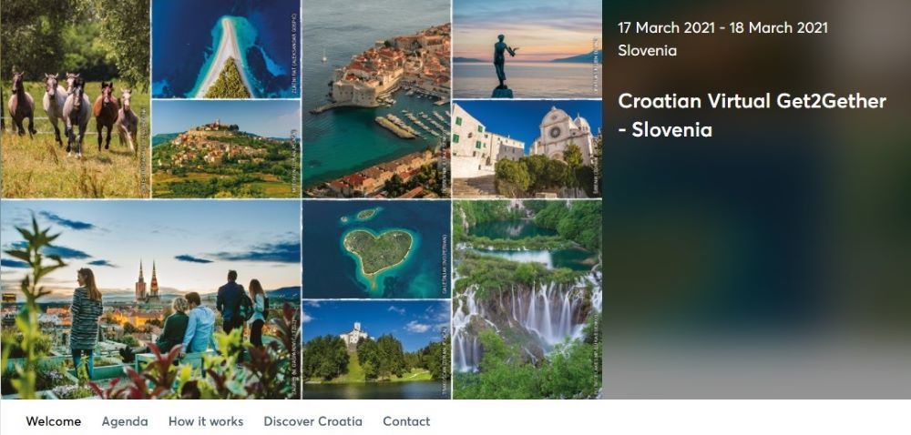 Hrvatska turistička zajednica s ciljem promocije hrvatskog turizma i ukupne hrvatske turističke ponude na tržištu Slovenije organizira dvodnevnu poslovnu radionicu koja je započela jučer u sklopu projekta Croatian Virtual Get2Gether. Radionica je okupila ukupno 86 sudionika iz Hrvatske i Slovenije, koji će međusobno odraditi preko 380 sastanaka. Riječ je o jednoj od 30 virtualnih prezentacija i radionica koje Hrvatska turistička zajednica u ovoj godini planira održati na 16 najvažnijih emitivnih tržišta, a koje su pokrenute uslijed nemogućnosti održavanja klasičnih sajmova i radionica diljem svijeta.