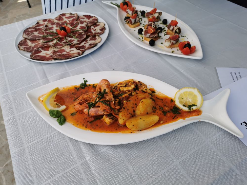 kušalo menu od Cromarisove uzgojene ribe, tvrtke koju smo posjetili ranije, a koja se bavi uzgojem riblje mlađi u iznimno sofisticiranim pogonima - mriještilištima, a dio i prodaje kao konzerviranu ili svježu ribu.
