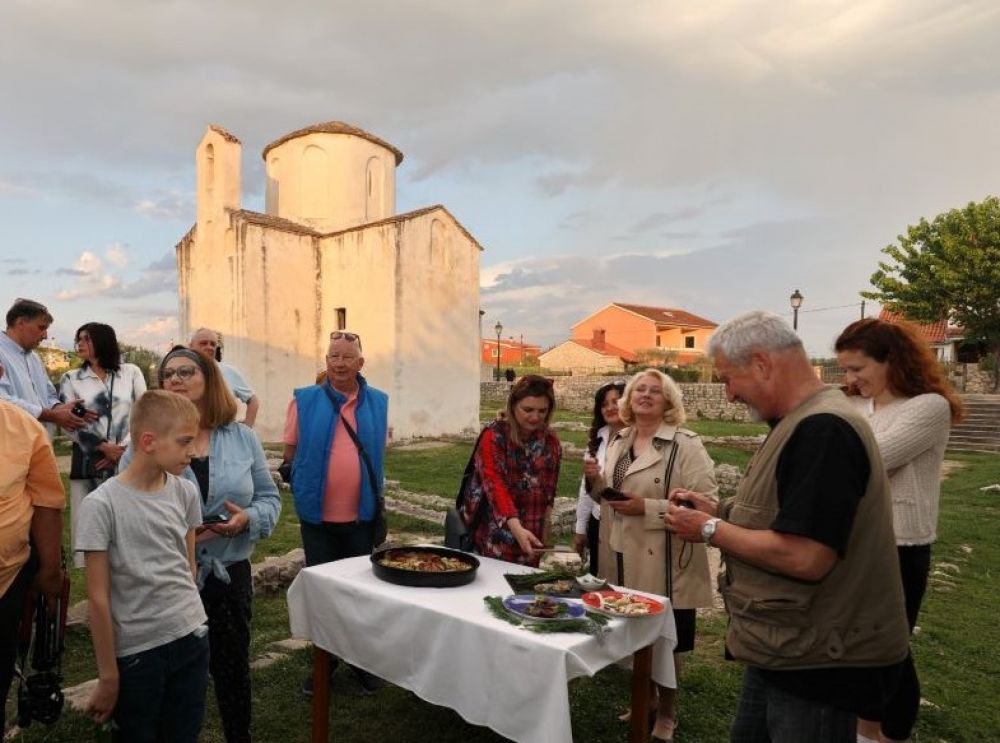 Gastronomska šetnja Ninom prvi je dan počela u Pizzeriji ”Za kvarat ure“, a osim pizza sa šparogom i šokolom, bilo je tu i salata s morskim šparogama i ribom.