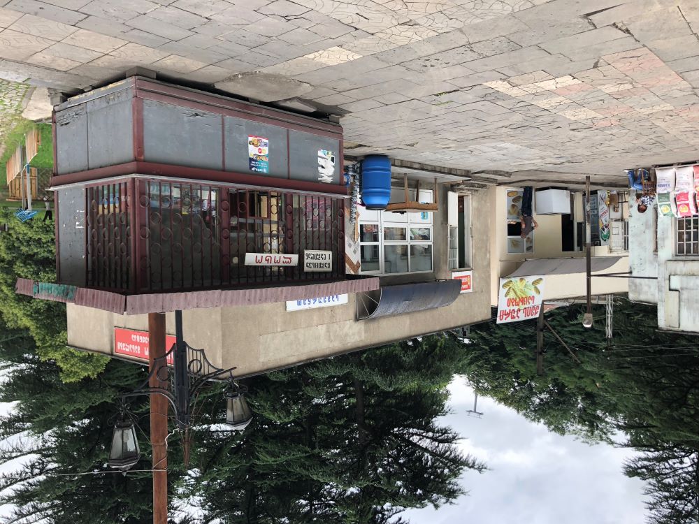 Nakon što se prijeđe most nalazi se mala, teško je reći tržnica. U stvari tu su kiosk, kakvog znam s Kosova ili iz Skoplja iz neke 1979. godine, na kojem prodaju srećke, trgovina s vrećama brašna i ljubaznom prodavačicom koja me nasmiješena dočekala s unukom, krasnom djevojčicom starom nekih devet godina i – vagom. Da, moguće je kupiti i kilogram brašna koje će zagrabiti i izvagati na pretpotopnoj vagi. Do nje je trgovina općim potrepštinama s nešto slatkiša, nekoliko boca ulja i octa, instant juhom i slično, a ispred je stojnica na kojoj postariji Gruzijac prodaje kruh. Priznajem, jedinstveni doživljaj.