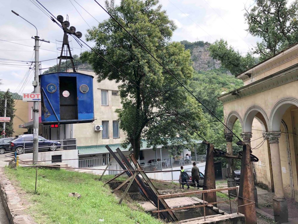 Upravo je sustav žičara, za koje mi ni u Chiaturi nisu znali reći točan broj koji se kretao od 10 do 17, bio razlog posjete tom gradu u kojem su mi se svi stanovnici činili nekako umorni, ali ljubazni, te vrlo zatvoreni. Kabine za putnike su bile otvorene s jedne strane. S vremenom su zastarjele i postale opasne pa je 2016. godine promet, nažalost, prekinut. Ušao sam u jednu od donjih postaja u kojima je mehanizam sačuvan. Ostale su i upute i upozorenja da se svatko vozi na vlastitu odgovornost! Postoje i požutjeli papiri s redom vožnje. Toliko o sigurnosti vožnje!