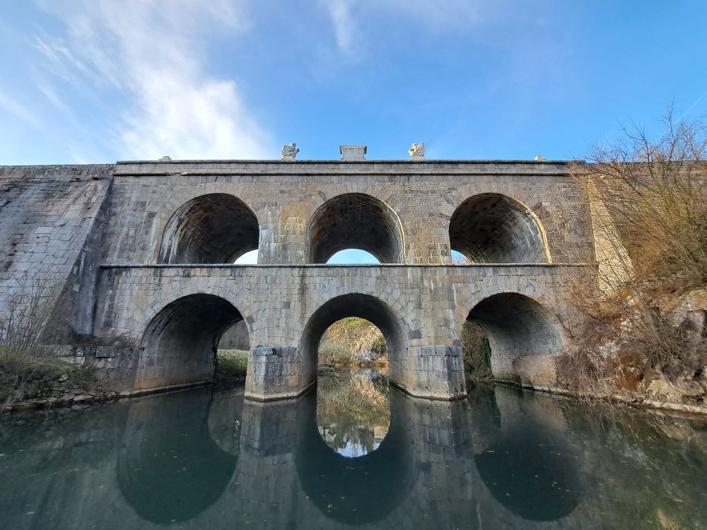 Moje cinične misli ubrzo prekida jedan intrigantan prizor – kipovi rimskih, ili možda grčkih vojnika stoje kao zaštitari, po jedan par na svakoj strani kratkog, ali vrlo impresivnog mosta. Čitam znakove – zadnji smeđi znak na ovom putovanju koji mi otkriva još jednu od toliko dragih mi lokacija.