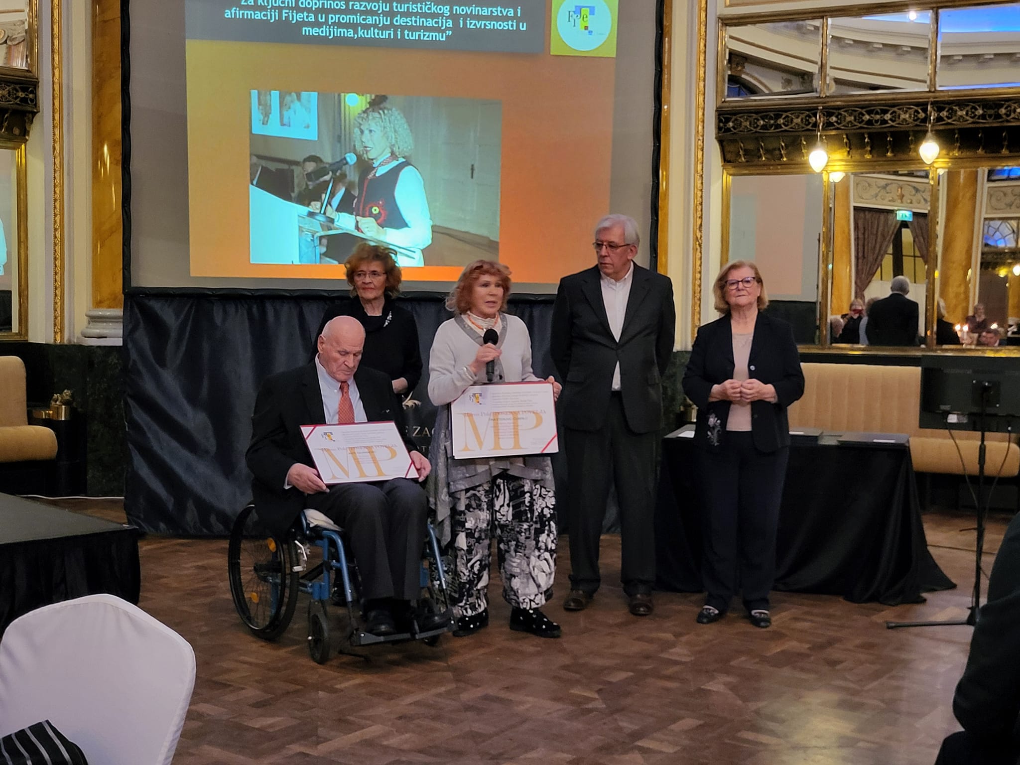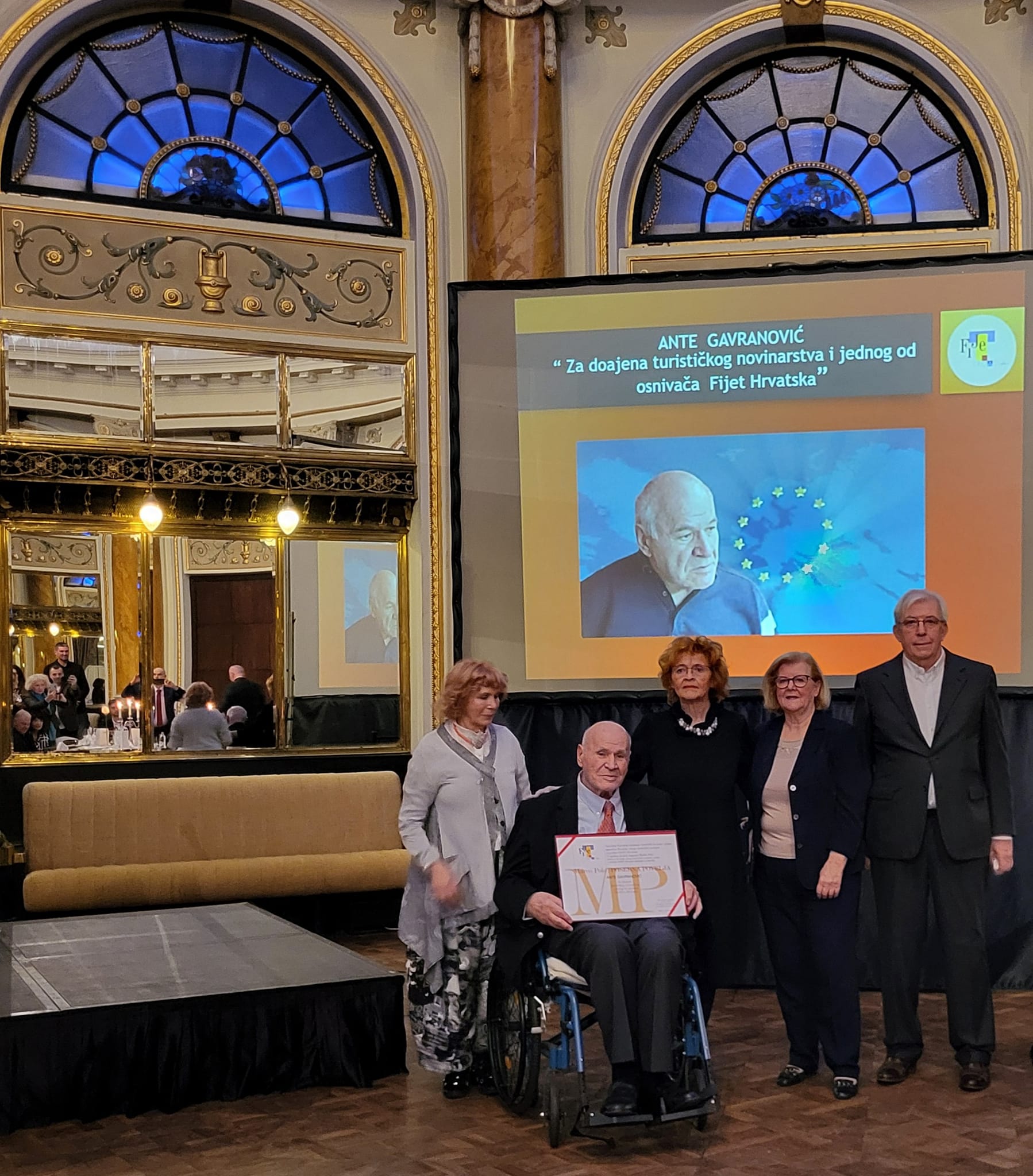 Legenda hrvatskog novinarstva, ugledni novinar, urednik, publicist, doajen turističkog novinarstva i jedan je od osnivača FIJET-a Hrvatske, Ante Gavranović, nagrađen je Poveljom za životno djelo, kao i Tina Eterović Čubrilo, predsjednica Fijeta Hrvatska i potpredsjednica Fijet World koji je 1994. ponovno oživjela CroFIJET i osnažila ulogu Hrvatske u toj međunarodnoj organizaciji u kojoj godinama obnaša dužnost potpredsjednice FIJET-a. Potaknula jer obilježavanje Svjetskog dana turizma, idejni je začetnik nagrade Marko Polo, te dodjele priznanja Zlatna jabuka turističkim odredištima.