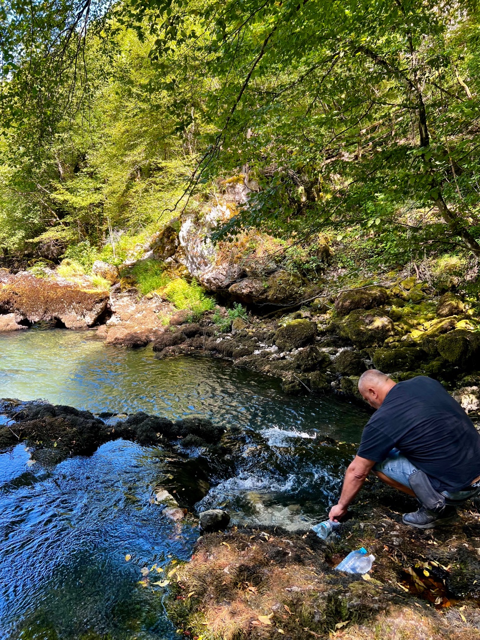 Pijem hladnu izvorsku vodu dok neki posjetitelji pune (nažalost) plastične boce istinskom zdravom izvorskom vodom na mjestu gdje čak ni ribe ne žive. Pitate se zašto? One ne žive u vodi ako ne vide dno rijeke! Zanimljivo, zar ne?