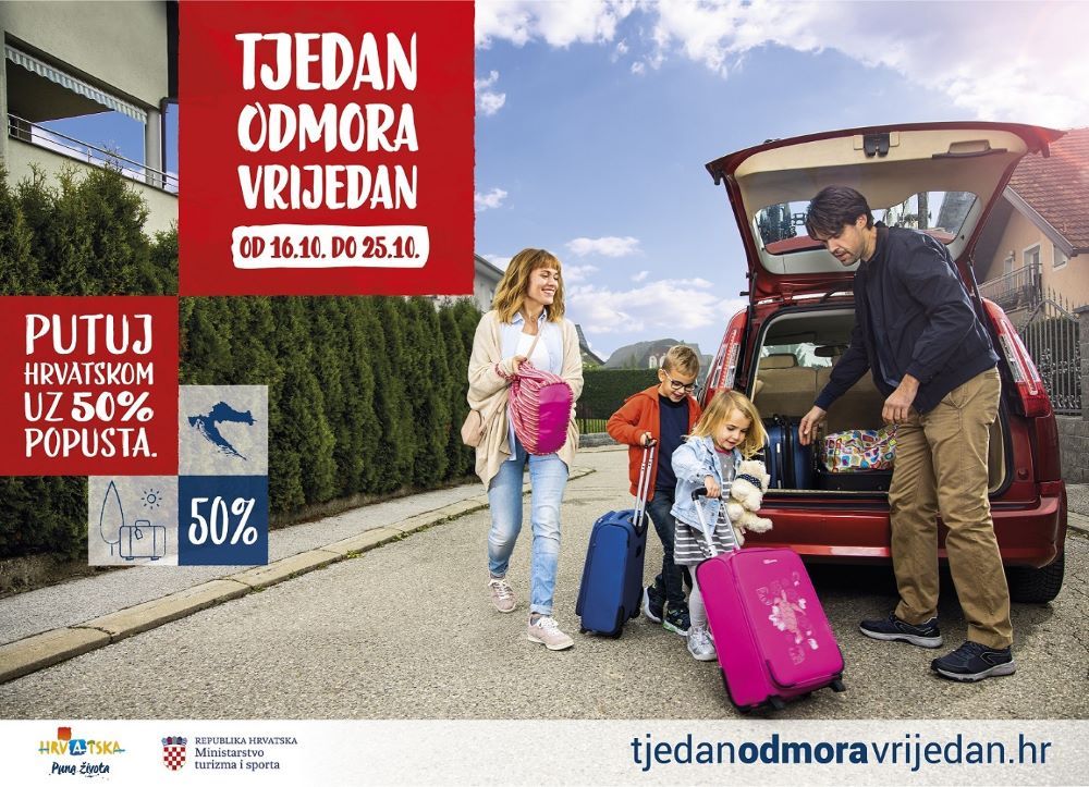 Turističke usluge i doživljaji u sklopu zajedničkog projekta Ministarstva turizma i sporta i Hrvatske turističke zajednice „Tjedan odmora vrijedan“, od sutra pa sve do 25. listopada, dostupne su po minimalno 50 posto povoljnijim cijenama. Tako svi hrvatski građani, ali i inozemni gosti koji će se u tom razdoblju nalaziti u Hrvatskoj, po atraktivnim cijenama mogu doživjeti i iskusiti gotovo 400 različitih turističkih usluga u svim dijelovima Hrvatske koje se dostupne na portalu „Tjedan odmora vrijedan“.