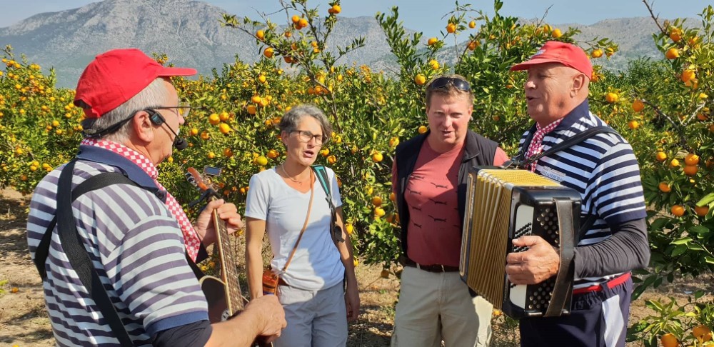 Ujesen tako cijela delta odjekuje od razdraganih berača dok glazbenici koji goste prate od ukrcavanja na lađe pa sve do polja, svojim muziciranjem, pridonose zvučnoj kulisi dok gosti neizmjerno uživaju u berbi tih zlatnožutih, sočnih plodova jeseni na prudima neretvanske močvare.