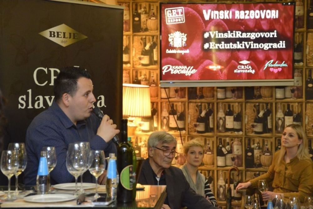 Na vinskim razgovorima s novinarom Tomislavom Stiplošekom, zabavno-edukativnoj interaktivnoj radionici koja je prilagođenea i vinskim znalcima i ljubiteljima vina koji tek uče, a održava se dva puta mjesečno u kavani Procaffe u Tkalčićevoj ulici u središtu Zagreba predstavila se vinarija Erdutski vinogradi .