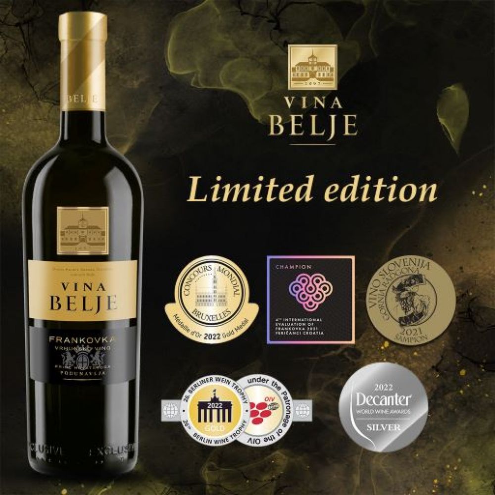 U povodu 325 godina postojanja, velikog jubileja koji kompanija Belje obilježava ove godine, Vina Belje puštaju na tržište limitiranu količinu od 325 butelja šampionske frankovke iz berbe 2012. To su butelje koje su se čuvale u arhivi vinskog podruma Belje za ovu posebnu priliku i vinski su kolekcionarski primjerci.