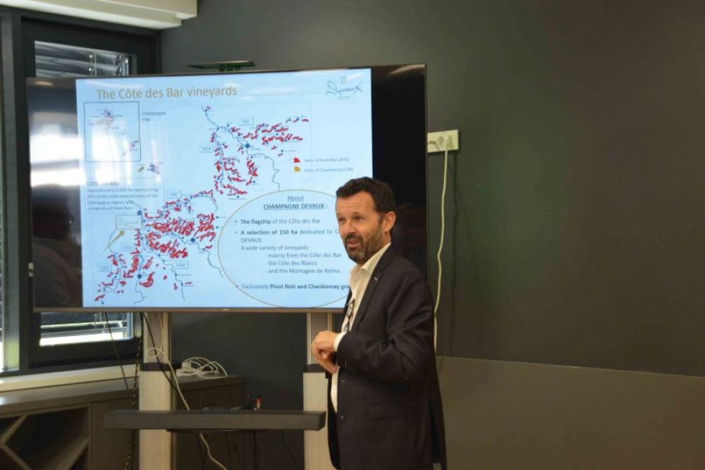 Jean-Noel Girard, direktor izvoza šampanjerije Devaux iz najjužnije šampanjske regije Côte des Bar na rijeci Seni uzvodno od Pariza, u tvrtki Vrutak u Zagrebu predstavio je sedam šampanjaca. Champagne Devaux jedna od najstarijih šampanjskih kuća i postoji od 1846. godine. Pokriva 150 hektara vinograda, a organizirana je na principu cooperative, sa 45 vinogradara. Godišnje na tržište plasira milijun butelja šampanjca. Côte de Bar je bregovito područje s dosta rijeka i sa vinogradima na padinama pretežito okrenutim prema jugo-istoku. Tlo je ilovača i vapnenac, klima je kontinentalna. Pinot crni prevladava a od bijelih Chardonnay. Kuća Devaux ima vinograde s bijelim sortama i na području Côte de Blancs i Montaigne-de-Reims.
