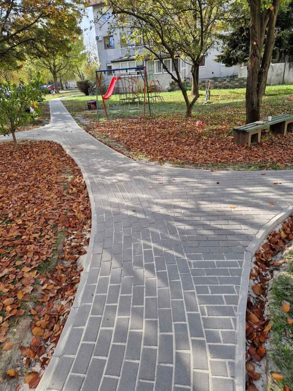 Uređenje pješačkih staza u blizini dječjeg igrališta omogućit će sigurnije i ugodnije kretanje najmlađih, potičući aktivno sudjelovanje djece u vanjskim aktivnostima. Osim toga, u sklopu radova, uređeno je i parkiralište za osobna vozila, koje je sada opremljeno travnatim pločama – rasterima, a dosad je godinama bilo izvedeno samo u šljunčanoj podlozi.