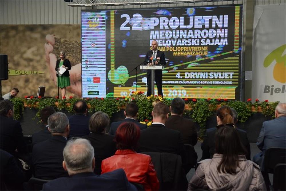 Potpredsjednik Vlade Republike Hrvatske i ministar poljoprivrede, Tomislav Tolušić otvorio je 29. ožujka, kao izaslanik predsjednika Vlade Republike Hrvatske Andreja Plenkovića, 22. proljetni međunarodni bjelovarski sajam i 4. sajam Drvnog svijeta.Otvarajući sajam ministar Tolušić se osvrnuo na stanje u poljoprivredi i aktivnosti koje poduzima Ministarstvo poljoprivrede kako bi pomoglo hrvatskim poljoprivrednicima. „Najnovija mjera zasigurno će razveseliti proizvođače jabuka, drugog voća i povrća jer pokrećemo izgradnju infrastrukture za prijem i trženje poljoprivrednih proizvoda. U iduće tri godine bit će izgrađeno 20 centara od toga sedam skladišno-distribucijskih centara za jabuke, te ostalo voće i povrće, svaki kapaciteta 5.000 tona i 13 skladišnih centara za voće i povrće, pojedinačnog kapaciteta 3.000 tona. Želimo pomoći našim voćarima i povrćarima koliko možemo te izgraditi hladnjače koje će biti prostor za skladištenje i distribuciju voća i povrća, što će im omogućiti da svoje proizvode prodaju kada je najveća potražnja i kada mogu ostvariti najveću cijenu“- izjavio je potpredsjednik Vlade RH i ministar poljoprivrede, Tomislav Tolušić u Bjelovaru.
