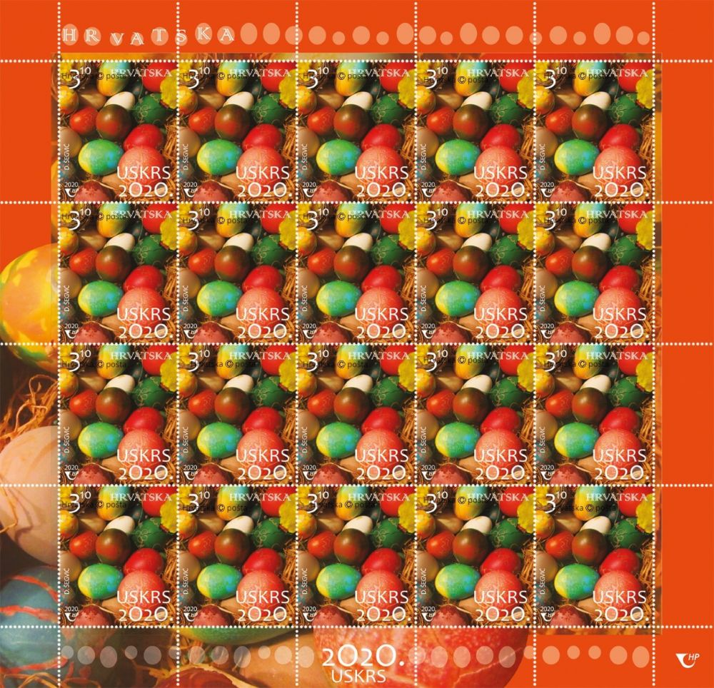 Hrvatska pošta pustit će u optjecaj 26. ožujka 2020. prigodnu poštansku marku Uskrs 2020. Ovogodišnju marku redovitog prigodnog izdanja u povodu Uskrsa dizajnirao je Duje Švegić, dizajner iz Splita, a naklada iznosi 100 000 primjeraka. Marka s motivom pisanice izdana je u arku od 20 maraka i njezina nominalna vrijednost je 3,10 kuna.